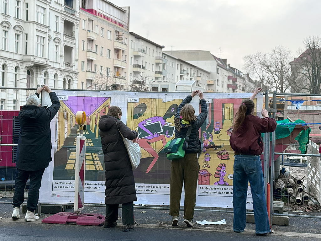 Als großformatige Ausstellungsfläche dient der Bauzaun des Bildlabors Kleistpark. Ziel der Kooperation ist es, die wechselvolle Geschichte