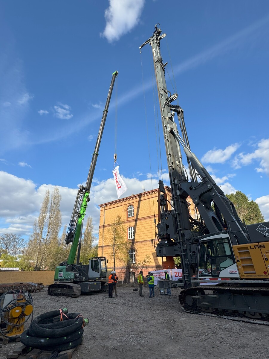 Mit dem Spatenstich am 8. April 2025 hat offiziell die Bauphase für das BILDLABOR Kleistpark begonnen. Ein besonderes Augenmerk gilt während jeder Bauphase der Umweltverträglichkeit, Arbeitssicherheit und Rücksichtnahme auf das Umfeld: „Unsere Baustellenlogistik ist auf minimale Emissionen und größtmögliche Rücksichtnahme auf die Anwohnerschaft ausgelegt. Wir setzen unter anderem auf lärm- und erschütterungsreduzierende Maßnahmen wie das Doppelkopfbohrverfahren, abgestimmte Lieferzeiten und emissionsarme Maschinen“, betont Projektoberbauleiterin Alena Krausch von der Züblin Spezialtiefbau GmbH.